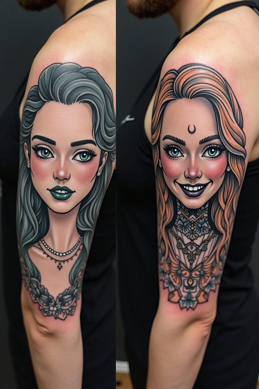 Ein bestehendes Arm-Tattoo muss nicht für immer in seiner ursprünglichen Form bleiben, sondern kann durch geschickte Neugestaltung zu einem atemberaubenden Kunstwerk transformiert werden. Ein Cover-up bietet die perfekte Lösung, wenn du mit deinem alten Motiv unzufrieden bist oder es nicht mehr deinem aktuellen Lebensstil entspricht. Bei der Planung solltest du einen erfahrenen Tätowierer konsultieren, der Expertise mit überdeckenden Designs hat und dir realistische Möglichkeiten aufzeigen kann, denn nicht jedes alte Tattoo lässt sich problemlos überarbeiten. Häufig eignen sich für Cover-ups besonders Motive mit kräftigen Linien und dichten Schattierungen, die das ursprüngliche Design effektiv kaschieren können. Eine andere Option ist die Erweiterung deines bestehenden Arm-Tattoos zu einem größeren Kunstwerk, wobei das ursprüngliche Motiv als Ausgangspunkt für ein umfassenderes Design dient, das sich harmonisch um den Arm schmiegt. Bedenke, dass eine erfolgreiche Neugestaltung in der Regel mehr Fläche beansprucht als das Originaltattoo und möglicherweise mehrere Sitzungen erfordert, um optimale Ergebnisse zu erzielen. Letztendlich eröffnet die Umgestaltung deines Arm-Tattoos spannende kreative Möglichkeiten, um deine Haut mit einem Design zu schmücken, das besser zu deiner aktuellen Persönlichkeit und deinem Stil passt.