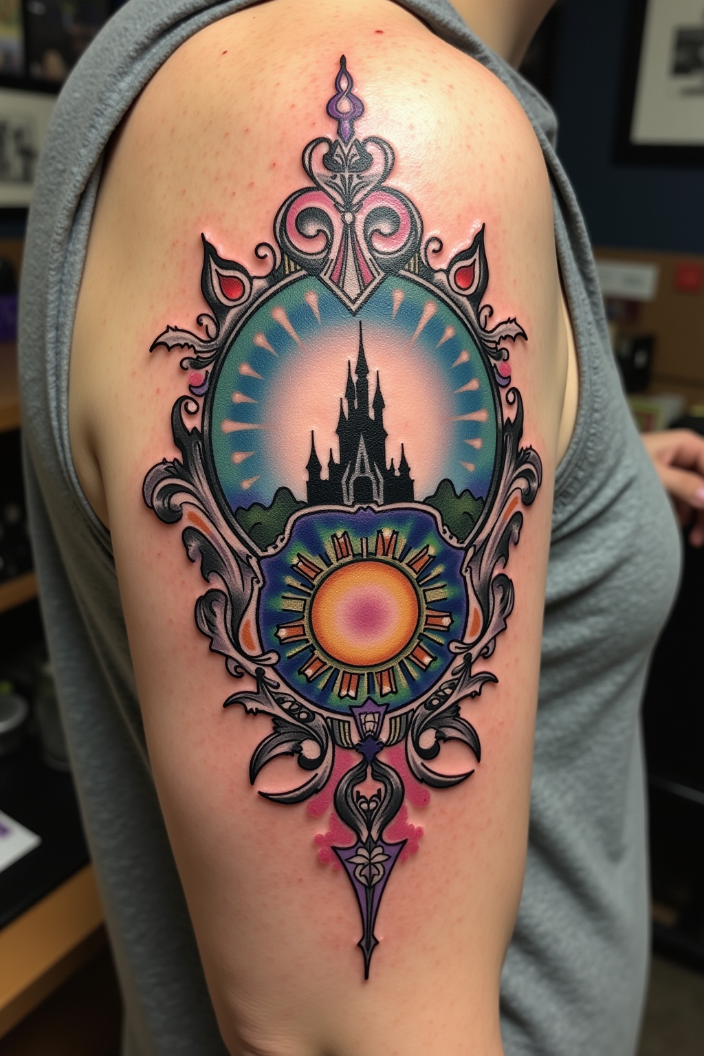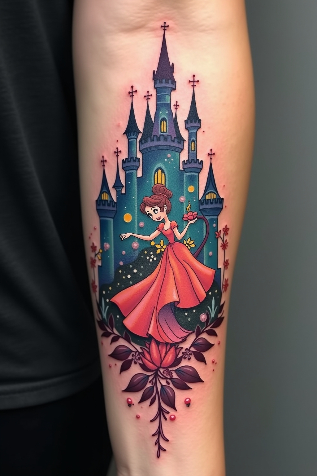 Die Disney-Tattoo-Welt bietet eine faszinierende Vielfalt an symbolischen Bedeutungen, die weit über das reine Fandom hinausgehen. Mickey Mouse steht als zeitloses Symbol für Nostalgie und kindliche Unbeschwertheit, während Prinzessinnen wie Arielle oder Belle oft für Transformation und innere Stärke tätowiert werden. Das Schloss-Motiv repräsentiert nicht nur das ikonische Wahrzeichen der Disney-Parks, sondern auch den Glauben an Träume und Magie im Alltag. Tinkerbell-Tattoos verkörpern mit ihrem Feenstaub den Gedanken, dass ein wenig Magie jede Situation verwandeln kann. Viele Disney-Fans entscheiden sich für Zitate aus ihren Lieblingsfilmen, die als persönliche Lebensmottos fungieren und tägliche Inspiration bieten. Besonders tiefgründig sind oft die Bösewicht-Tattoos, die die Komplexität des Lebens und die Dualität von Gut und Böse symbolisieren. Die subtileren Motive wie der gläserne Schuh aus Cinderella oder die verzauberte Rose aus „Die Schöne und das Biest“ tragen oft sehr persönliche Geschichten ihrer Träger in sich und verbinden Disney-Magie mit individueller Lebenserfahrung.
