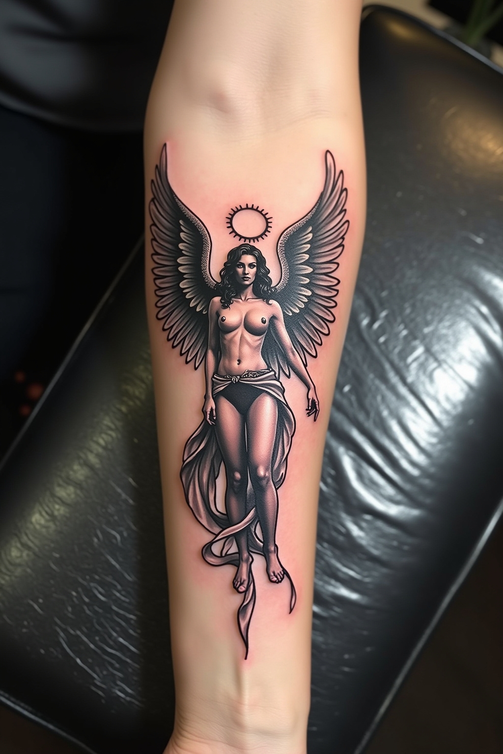 Engel Tattoos haben in verschiedenen Kulturen und Religionen tiefgreifende symbolische Bedeutungen, die weit über den christlichen Kontext hinausgehen. In der christlichen Tradition repräsentieren Engel göttliche Boten, Schutzpatrone und himmlische Wächter, während sie im Islam als „Malaika“ bekannt sind und als Überbringer göttlicher Botschaften verehrt werden. Die buddhistische und hinduistische Ikonografie kennt engelähnliche Wesen wie Devas oder Apsaras, die als Naturgeister oder himmlische Tänzerinnen dargestellt werden und in Tattoo-Designs mit charakteristischen asiatischen Stilmerkmalen erscheinen. In der keltischen Mythologie verschmelzen Engel oft mit geflügelten Naturgeistern, was zu einzigartigen Tattoo-Interpretationen mit Knotenmustern und natürlichen Elementen führt. Moderne westliche Tattoo-Kultur hat die Engelsymbolik erweitert, sodass sie heute auch für persönliche Transformation, überwundene Herausforderungen oder als Erinnerung an verstorbene Angehörige stehen kann. Interessanterweise variiert die Darstellung von Engeln kulturübergreifend stark – von den strengen Kriegern mit Flammenschwertern der biblischen Tradition bis zu den kindlichen Putten der Renaissance-Kunst. Diese kulturelle Vielfalt eröffnet Tattoo-Enthusiasten eine breite Palette an Ausdrucksmöglichkeiten, um ihre persönliche Verbindung zu spirituellen Schutzwesen durch Körperkunst darzustellen.