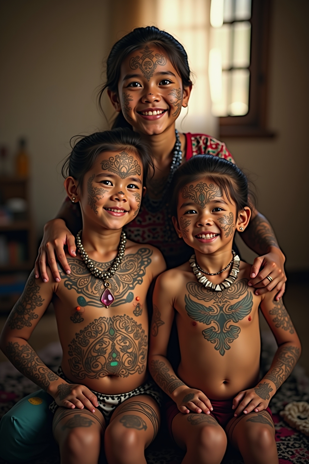 In verschiedenen Kulturen rund um den Globus haben Familien-Tattoos eine tiefgreifende Bedeutung, die weit über die westliche Mode-Perspektive hinausgeht. Bei den Māori in Neuseeland dient das traditionelle „Tā moko“ als Ausdruck der Familienabstammung und überträgt wichtige Informationen über Herkunft und soziale Stellung innerhalb des Stammes. Im Gegensatz dazu stehen die Familientattoos in Samoa, wo das „Pe’a“ für Männer und das „Malu“ für Frauen in aufwändigen Zeremonien angebracht werden und den Übergang ins Erwachsenenalter innerhalb der Familienstruktur symbolisieren. In Thailand wiederum werden „Sak Yant“-Tattoos von Mönchen gestochen und dienen dem Schutz der Familie sowie der Stärkung familiärer Bindungen durch spirituelle Kraft. Bemerkenswert sind auch die Familientraditionen der Yakuza in Japan, wo umfangreiche Tätowierungen die Zugehörigkeit zu einer bestimmten „Familie“ innerhalb der Organisation kennzeichnen. Bei den Berber-Stämmen in Nordafrika tragen Frauen traditionelle Gesichts- und Handtattoos, die ihre Familienzugehörigkeit ausdrücken und oft von Mutter zu Tochter weitergegeben werden. Im modernen westlichen Kontext haben sich Familien-Tattoos zu individualisierten Kunstwerken entwickelt, die persönliche Geschichten erzählen, während sie in vielen indigenen Gemeinschaften nach wie vor streng kodifizierten Regeln folgen, die über Generationen weitergegeben werden. Diese kulturellen Unterschiede zeigen eindrucksvoll, wie Familien-Tattoos weltweit als Ausdruck von Identität, Zugehörigkeit und familiärer Verbundenheit fungieren, wenn auch mit unterschiedlichen ästhetischen und sozialen Bedeutungen.