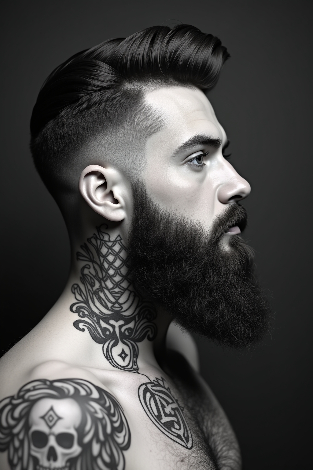 Die Welt der Halstattoos für Männer ist geprägt von einer faszinierenden Vielfalt an Stilrichtungen, die vom klassischen Old-School bis hin zu hyperrealistischen Meisterwerken reichen. Besonders beliebt sind derzeit geometrische Muster, die sich elegant um den Hals schlängeln und durch ihre klaren Linien eine moderne Ästhetik verkörpern. Tribal-Designs erleben ein bemerkenswertes Comeback, wobei sie heute oft mit feinen Details und individuellen Elementen aufgewertet werden, um eine persönliche Note zu schaffen. Der Neo-Traditional-Stil mit seinen kräftigen Farben und schwarzen Konturen bietet sich hervorragend für Halstattoos an, da er auch aus der Entfernung beeindruckend wirkt und die markante Halspartie optimal zur Geltung bringt. Minimalistische Designs mit feinen Linien und zurückhaltenden Schattierungen sprechen Männer an, die ein subtiles, aber dennoch ausdrucksstarkes Statement setzen möchten. In jüngster Zeit gewinnen auch Schriftzüge und kalligrafische Elemente zunehmend an Beliebtheit, wobei persönliche Mantras oder bedeutungsvolle Zitate quer über den Hals oder entlang der Halsseite platziert werden. Nicht zu vergessen sind die Blackwork-Tattoos, die durch ihre intensive Schwärze und grafischen Kontraste für einen dramatischen Effekt sorgen und besonders bei selbstbewussten Männern, die keine Scheu haben aufzufallen, großen Anklang finden.