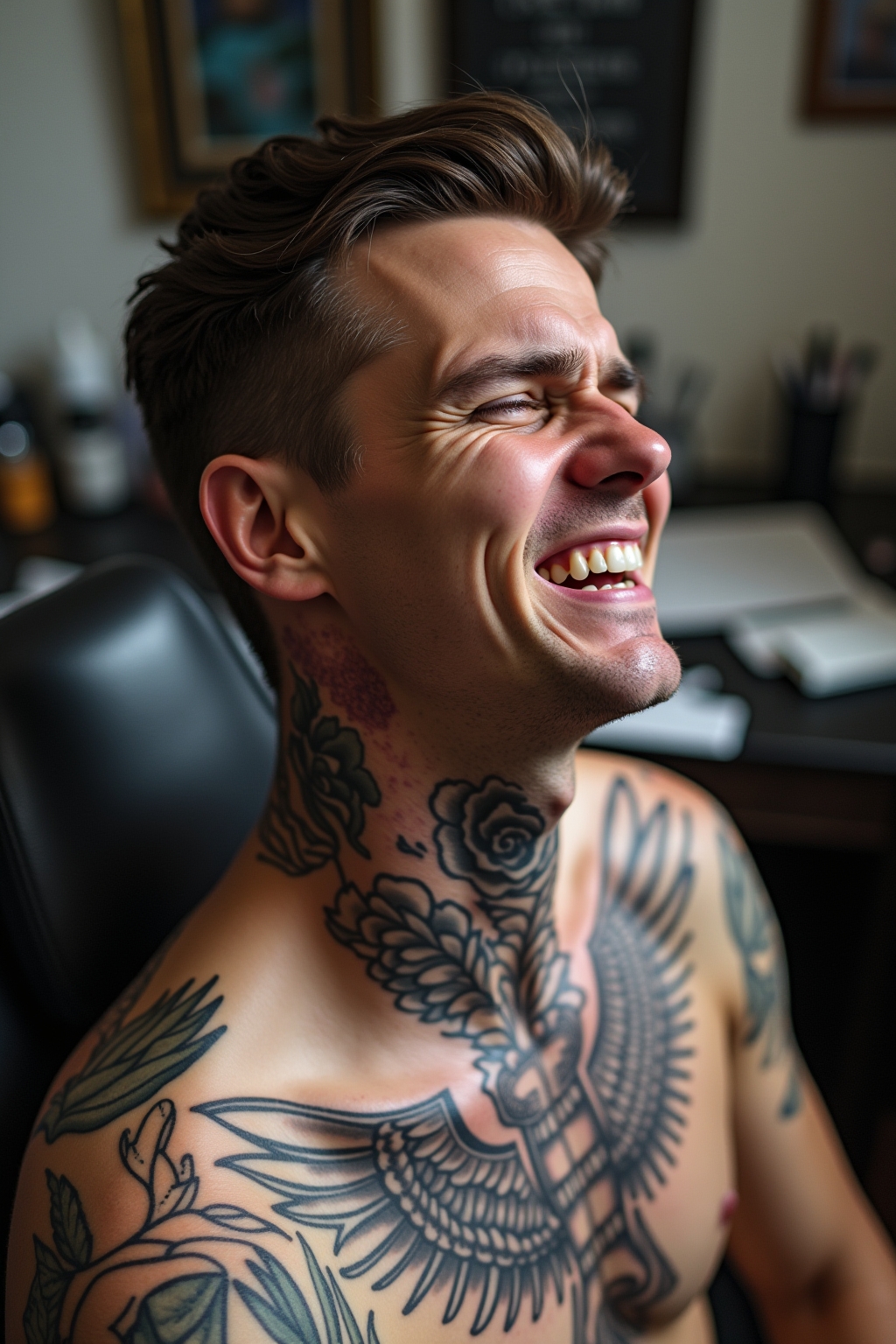 Schmerzfaktor und Heilungsprozess bei männlichen Hals Tätowierungen