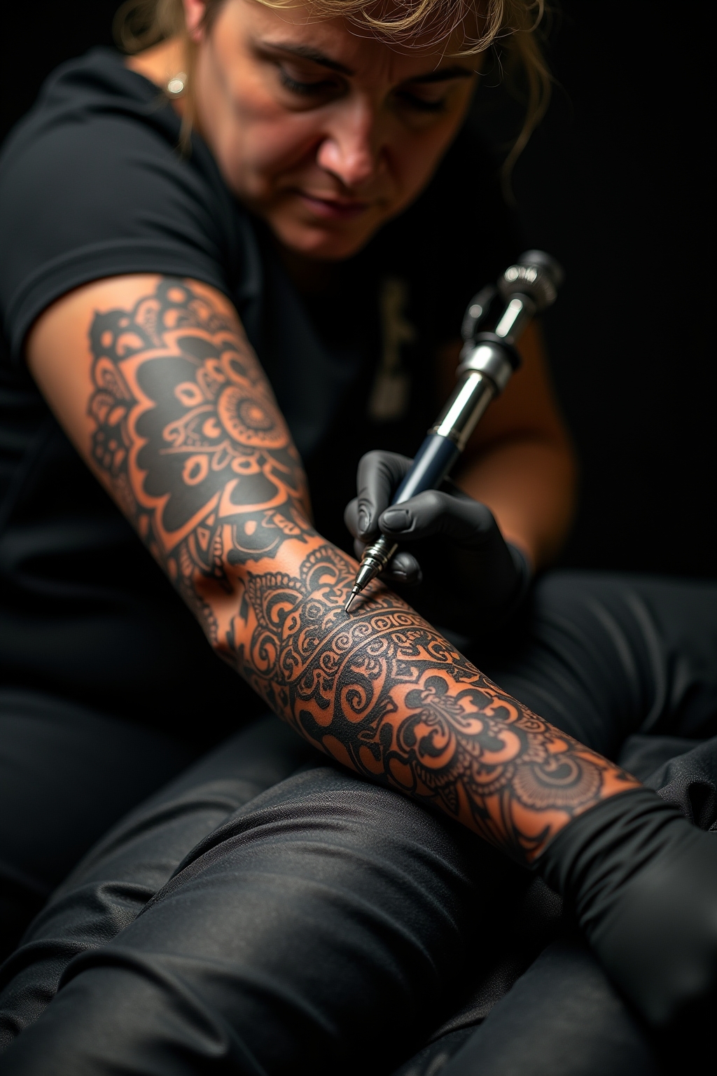 Im Bereich der Mandala-Tattoos für den Arm haben sich einige Künstler einen besonderen Namen gemacht und werden für ihre außergewöhnlichen Designs geschätzt. Die in Los Angeles arbeitende Tätowiererin Coen Mitchell hat durch ihre filigrane Linienarbeit und die Integration von geometrischen Elementen in traditionelle Mandala-Muster internationale Anerkennung erlangt. Auch der brasilianische Künstler Marco Santos begeistert mit seinen dreidimensionalen Mandala-Interpretationen, die durch Schattierungstechniken eine erstaunliche Tiefe auf der Armhaut erzeugen. In Berlin hat sich Sophia Weber auf minimalistische Mandala-Tattoos spezialisiert, die durch ihre Schlichtheit und präzise Ausführung bestechen und besonders an Unterarmen zur Geltung kommen. Der japanische Meister Takashi Yamamoto verbindet hingegen traditionelle asiatische Symbolik mit modernen Mandala-Strukturen, wodurch einzigartige Armkunstwerke entstehen, die spirituelle Tiefe vermitteln. Wer auf der Suche nach farbenprächtigen Mandala-Interpretationen ist, findet in der Neuseeländerin Emma Clarke eine Künstlerin, die leuchtende Aquarelltechniken mit präzisen Mandala-Mustern vereint. Jeder dieser Künstler bringt eine individuelle Handschrift in die Gestaltung von Arm-Mandalas ein und kann ein gewöhnliches Tattoo in ein wahrhaft einzigartiges Kunstwerk verwandeln. Bei der Wahl des passenden Künstlers für das eigene Mandala-Tattoo am Arm lohnt es sich daher, die verschiedenen Stile genau zu studieren und einen Tätowierer zu finden, dessen ästhetische Vision mit den eigenen Vorstellungen harmoniert.