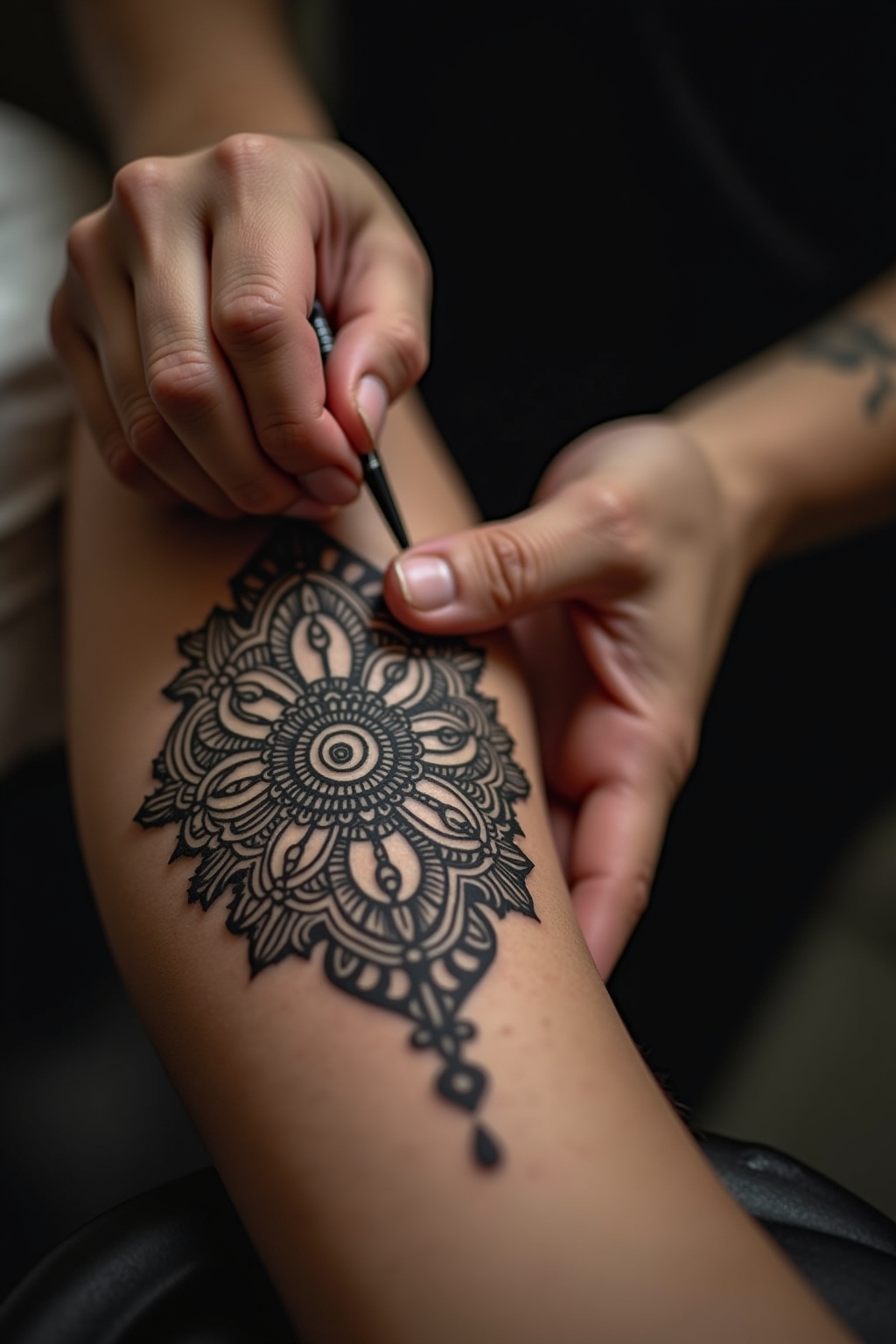 Die perfekte Platzierung eines Mandala-Motivs am Arm finden