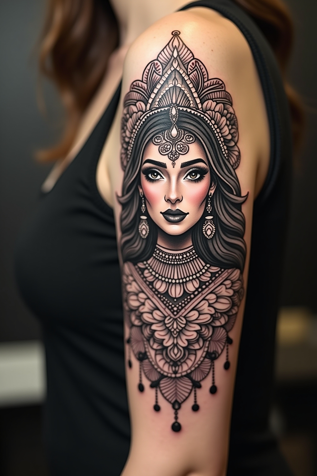 Mandala Tattoos haben ihre Wurzeln in alten spirituellen Traditionen, die vor allem im Buddhismus und Hinduismus verankert sind, wo sie ursprünglich als heilige geometrische Symbole für das Universum und den Kosmos standen. Die kreisförmigen Muster, die in konzentrischen Formen angeordnet sind, dienten Mönchen seit Jahrhunderten als Meditationshilfe und wurden traditionell mit farbigem Sand auf den Boden gestreut, um die Vergänglichkeit allen Seins zu symbolisieren. In westlichen Kulturen gewannen Mandala-Designs etwa ab den 1960er Jahren durch die wachsende Faszination für östliche Spiritualität und Philosophie zunehmend an Popularität und fanden ihren Weg in die moderne Tattoo-Kunst. Während traditionelle Mandalas strenge religiöse Bedeutungen und Strukturen aufweisen, werden sie heute oft personalisiert und mit individuellen Elementen wie Lotusblüten, Mond- und Sonnensymbolen oder geometrischen Formen kombiniert. Die ursprünglichen Vorlagen stammen aus heiligen Texten und jahrhundertealten Kunstwerken, die oft in Tempeln und spirituellen Stätten zu finden sind und von Tattoo-Künstlern als Inspiration genutzt werden. Bemerkenswert ist, dass jede Kultur, die Mandalas verwendet – sei es in Tibet, Indien oder Nepal – eigene charakteristische Stile und Symbolsprachen entwickelt hat, die sich in den heutigen Tattoo-Vorlagen widerspiegeln. Die Transformation vom religiösen Symbol zum populären Tattoo-Motiv zeigt eindrucksvoll, wie kulturelle Traditionen über Zeit und Raum hinweg neue Bedeutungen annehmen können, während sie gleichzeitig ihre tiefe spirituelle Essenz bewahren.