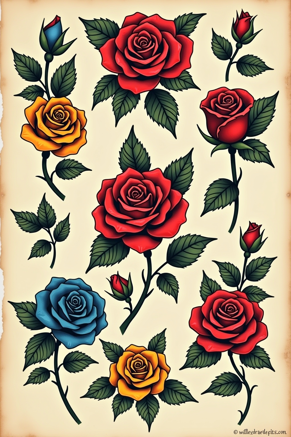 Farbige Rosen Tattoo Vorlagen und ihre symbolische Bedeutung