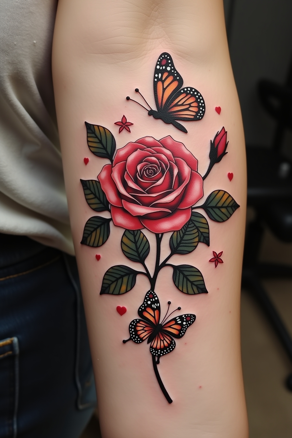 Rosen zählen zu den beliebtesten Motiven in der Tattoo-Kunst, da sie nicht nur eine außergewöhnliche Schönheit verkörpern, sondern auch eine reiche Symbolik in sich tragen. Als zeitloses Symbol für Liebe, Leidenschaft und Schönheit spricht die Rose Menschen verschiedenster Altersgruppen und Hintergründe an. Egal ob als detailreicher realistischer Entwurf, im Old-School-Stil oder als filigrane Linienzeichnung – die vielseitige Blume passt sich mühelos jedem Tattoo-Stil an.