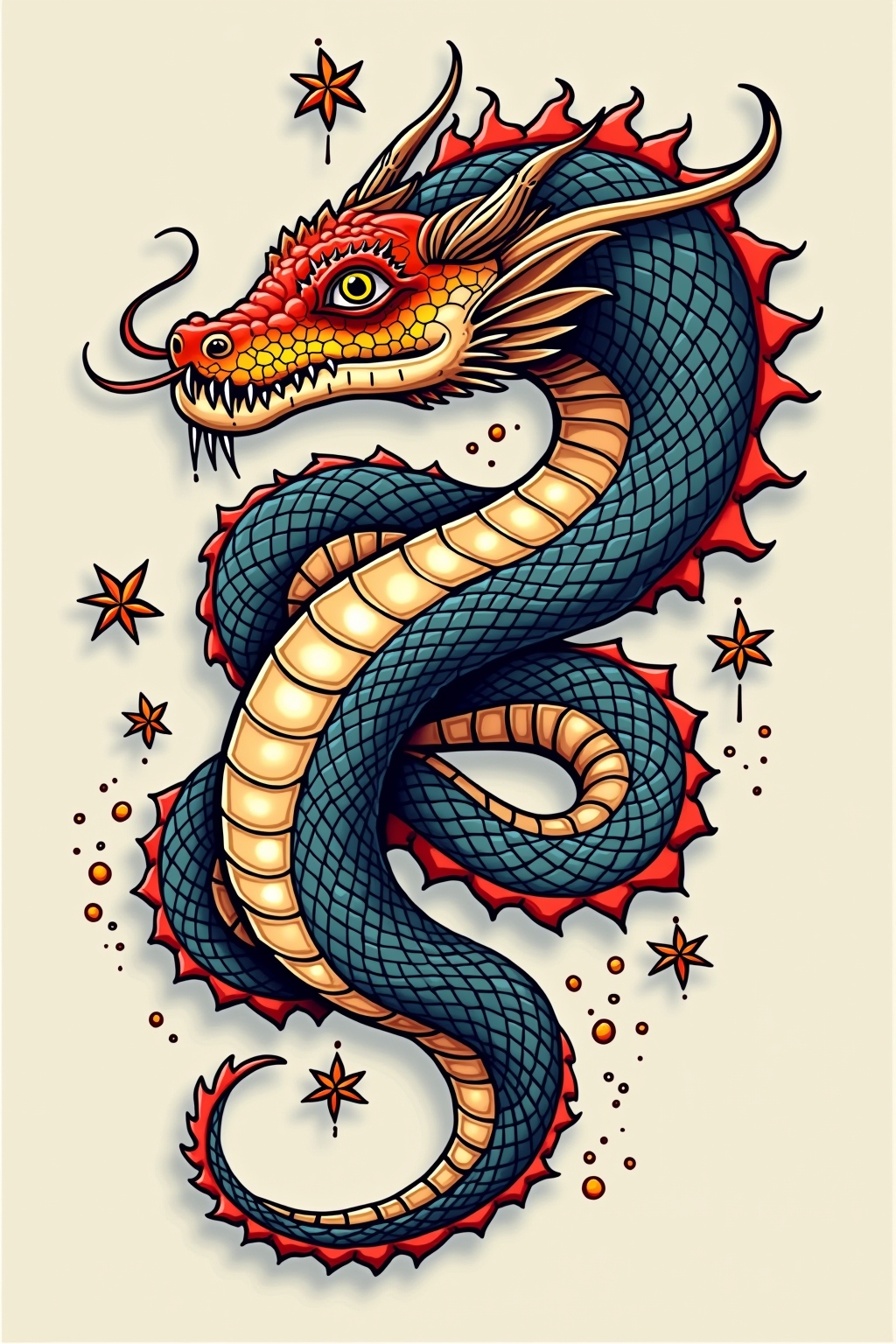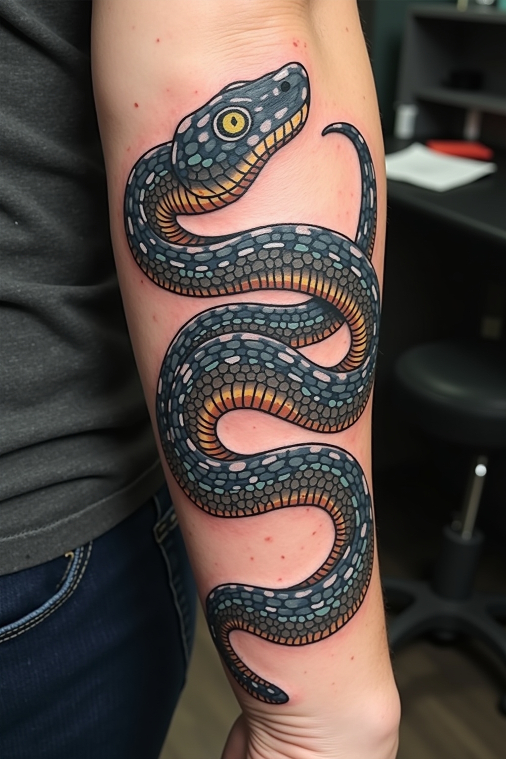 Moderne Interpretationen traditioneller Schlangen Tattoo Designs