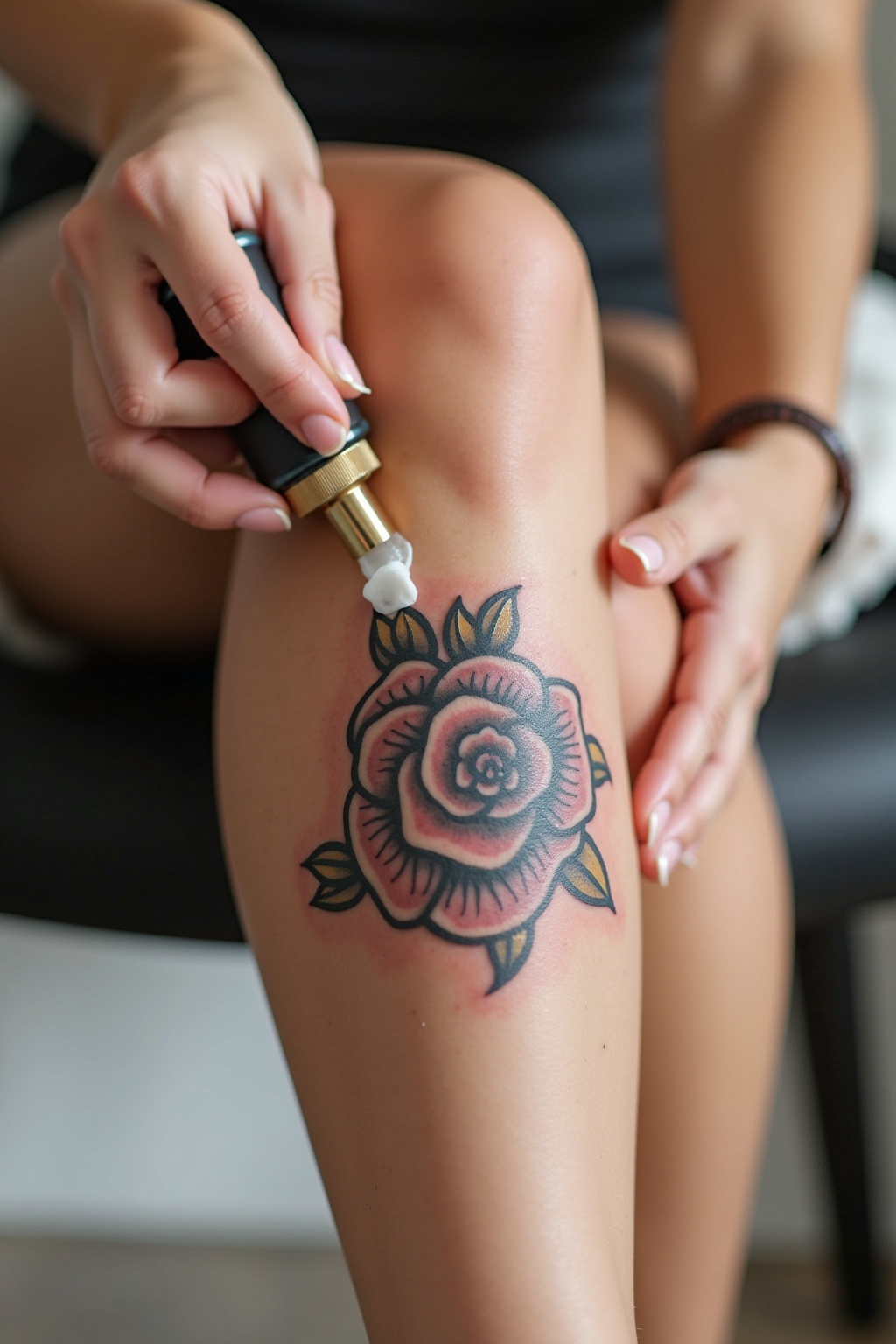 Heilungsprozess und Pflege von frischen Bein-Tattoos für Frauen