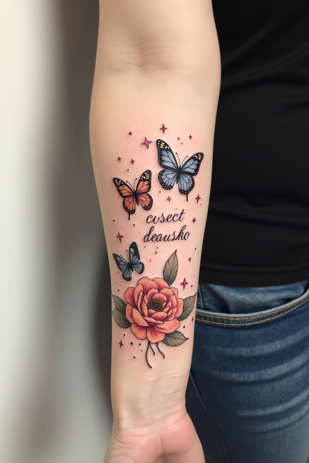 Blumen-Tattoos kombinieren: Von Schmetterlingen bis Schriftzügen