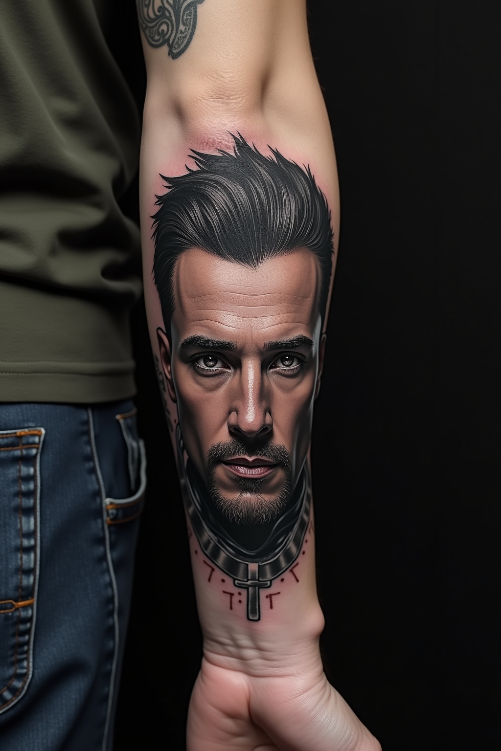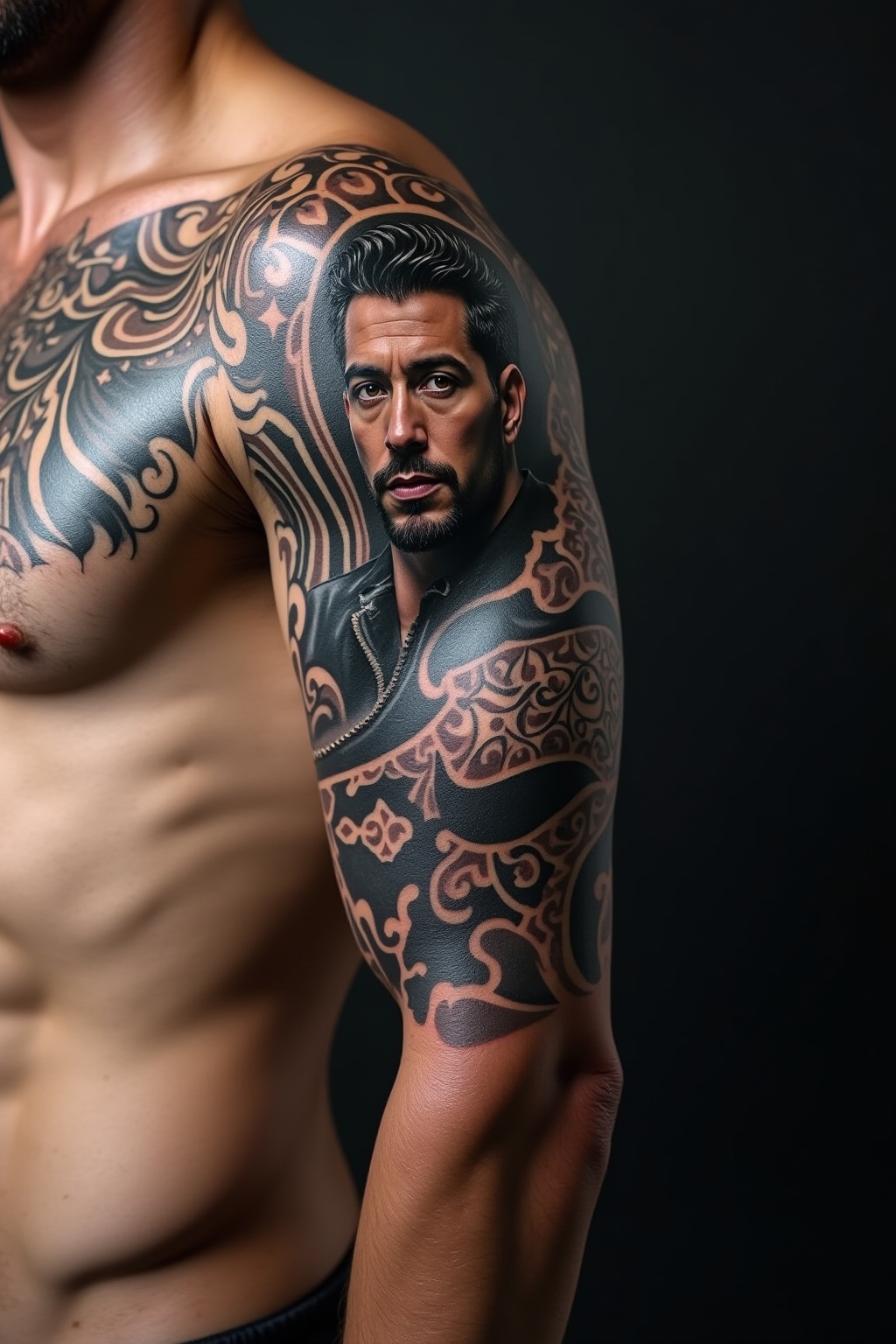 Der männliche Oberarm bietet eine ideale Fläche für ausdrucksstarke Tattoos, da er eine großzügige Leinwand mit relativ glatter Haut präsentiert. Die muskulöse Struktur des Oberarms sorgt dafür, dass Tattoos hier besonders vorteilhaft zur Geltung kommen und durch Bewegung lebendig wirken. Männer schätzen diese Körperstelle besonders, weil sie die Möglichkeit bietet, das Kunstwerk je nach Anlass entweder stolz zu präsentieren oder diskret unter einem Ärmel zu verbergen. Zudem zählt der Oberarm zu den weniger schmerzempfindlichen Bereichen des Körpers, was längere Sitzungen erträglicher macht als an empfindlicheren Stellen. Die Haut an dieser Stelle altert vergleichsweise langsamer und ist weniger der Sonne ausgesetzt als beispielsweise Unterarme oder Hände, wodurch Tattoos hier ihre Farbintensität länger bewahren können. Aus anatomischer Sicht bietet der Oberarm mit seiner leichten Rundung die Möglichkeit, sowohl flächige Designs als auch umlaufende Motive harmonisch zu integrieren. Nicht zuletzt verleiht ein gut platziertes Oberarm-Tattoo der männlichen Silhouette zusätzliche Definition und kann die natürliche Muskulatur optisch betonen, was die Beliebtheit dieser Körperstelle für Tattoo-Enthusiasten weiter steigert.