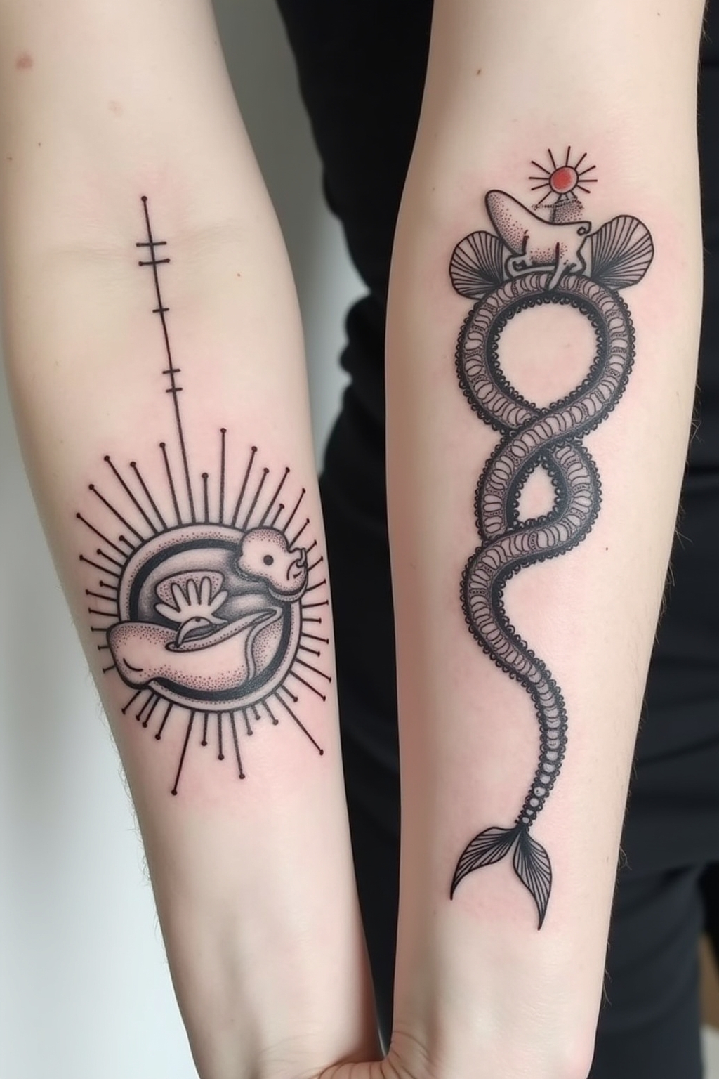 Als Wassermanngeborene mit ihrer kreativen und rebellischen Natur neigen sie dazu, ihre Tattoos genauso einzigartig und unkonventionell zu wählen wie ihre Lebenseinstellung. Bei der Pflege ihres Wassermann-Tattoos sollten sie besonders auf regelmäßige Feuchtigkeitsversorgung achten, denn das Luftelement dieses Sternzeichens kann die Haut schneller austrocknen lassen. Innovative Pflegeprodukte, die natürliche Inhaltsstoffe enthalten und umweltfreundlich sind, entsprechen ihrer fortschrittlichen Denkweise und sollten bevorzugt werden. Wassermänner sollten ihre Routine zur Tattoo-Pflege als bewusstes Ritual etablieren, das ihrer intellektuellen Natur entgegenkommt – vielleicht verbunden mit einem Moment der Reflexion über die tiefere Bedeutung ihres Körperkunstwerks. Da sie oft ungeduldig sein können, ist es wichtig, sie daran zu erinnern, dass die vollständige Heilungszeit eingehalten werden muss, selbst wenn sie bereits zum nächsten aufregenden Projekt eilen möchten. Ihre Neigung zum Experimentieren sollte bei der Tattoo-Pflege gezügelt werden; statt verschiedene Produkte auszuprobieren, ist es besser, bei einer bewährten Pflegemethode zu bleiben, um optimale Ergebnisse zu erzielen. Wassermänner sollten außerdem bedenken, dass ihr soziales Naturell sie oft an Orte führt, die ihre Tattoos belasten können – sei es beim Schwimmen im Meer oder bei Outdoor-Abenteuern – weshalb zusätzlicher Sonnenschutz und besondere Aufmerksamkeit nach solchen Aktivitäten empfehlenswert sind.